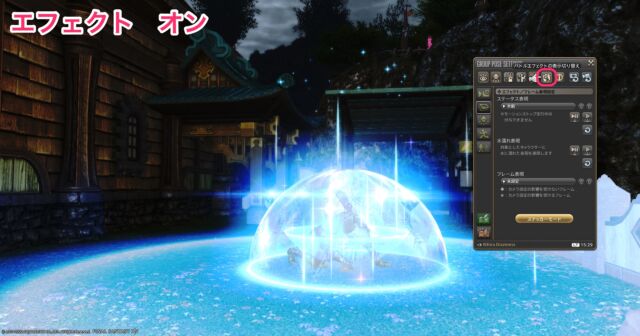 横並びボタンの中にある「バトルエフェクトの表示切り替え」は、WSや魔法を使った時のエフェクトをオンオフできます。