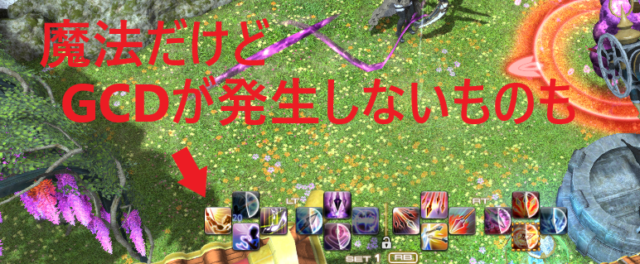 逆に、詩人の歌系スキル(賢人のバラードや軍人のパイオンなど)は、魔法でありながら他のリキャストタイマーの影響を受けず、GCD中に差し込むことができます。