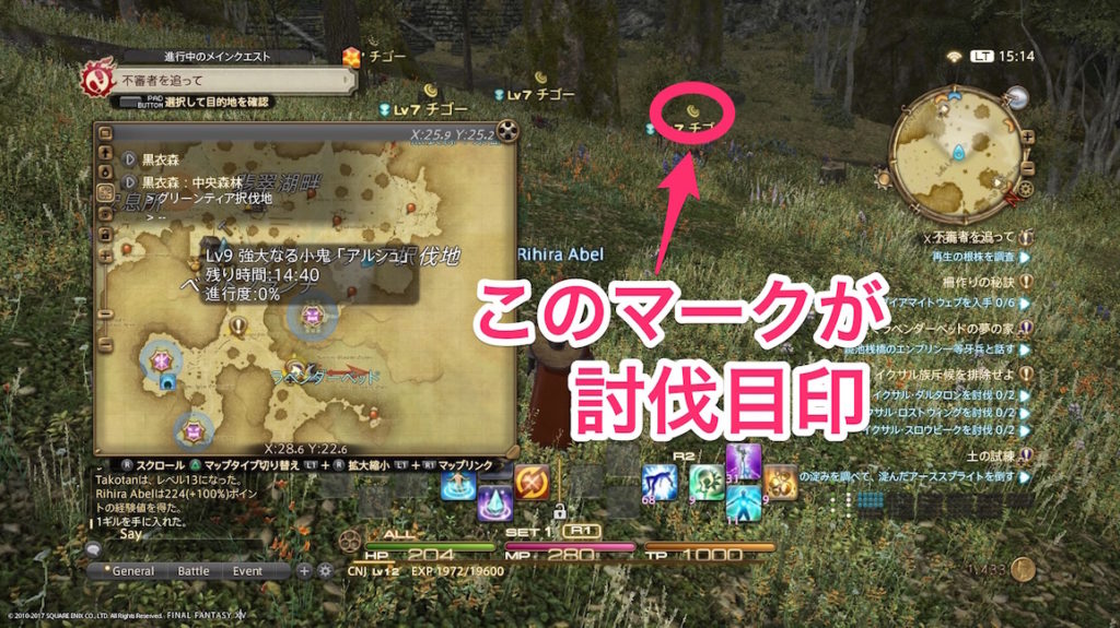 FF14でも敵を倒せば経験値獲得が可能ですが、クエストを消化するよりはごくわずか。