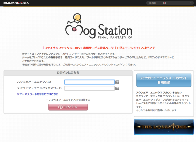 まずは下記ページから、スクエニIDとパスワードを入力してログインします。