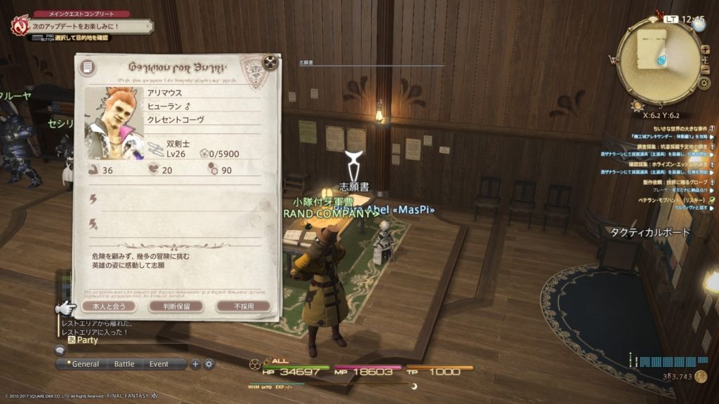 所属GCの兵舎へ行き、志願書の”確認→本人と会う”から志願兵と会って採否を決定。