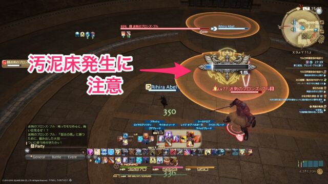 スタン後に詠唱がスタートし、ボス中心の円形範囲が徐々に拡大。
