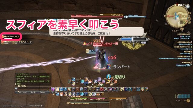 フェーズが進行するとボスとスフィアが繋がれるので、スフィアを素早く撃破します。