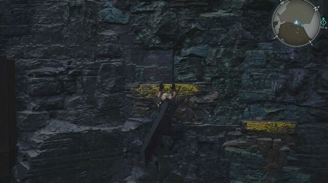 道中はゴツゴツとした岩場が多いのですが、リメイクの時よりも段差がある場所への移動が可能になっていて、結構自由に散策できます。ダッシュで移動するか、◯ボタンがパルクール表示になっている時に押すと、段差や柵を乗り越えられるようです。