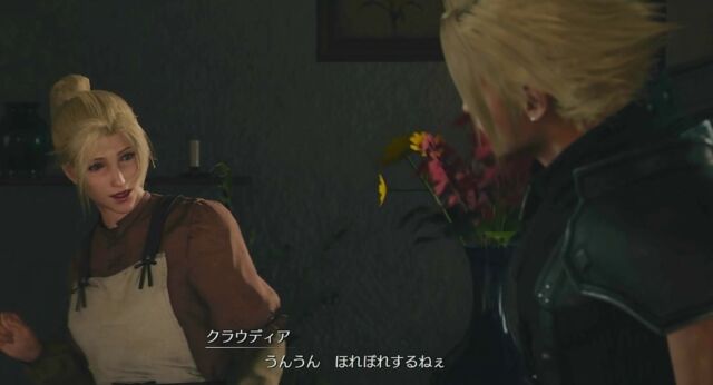 リメイクのED付近のシーンを経て、カームの宿屋でクラウドの過去話を聞く場面から始まります。
