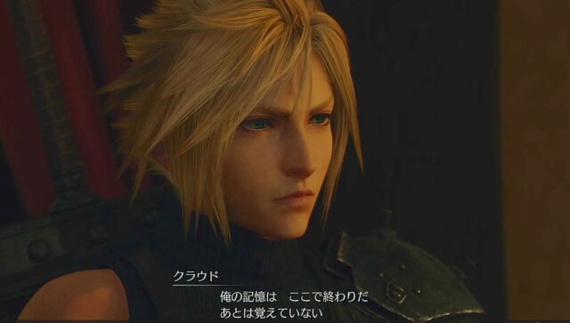 「クラウドがセフィロスを倒したことを覚えていた」と思われるアレですが、結局原作のとおりに一騎打ちの勝敗は「覚えていない」と言われて濁されました。あのセリフは、クラウドが無意識的に口走った設定になっているようです。