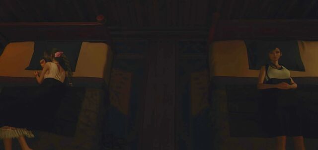 ティファがエアリスに5年前の真実を打ち明けるシーンが新たに追加されていました。原作にはなく、なんならこの事実をティファが口にするのは精神世界でのことなので、トレイラーで既出とはいえかなりの変化ですね。