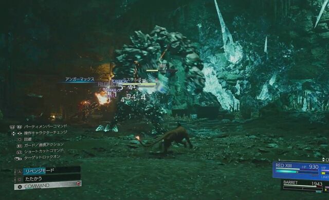 このあと、バレット&レッドVIIIでのボス戦、vsクリスタルゴーレムです。基本的に腕や頭部などの部位破壊を狙うことで弱体化させていきます。部位破壊はバレットの方が狙いやすいですよ。バレットメインで部位破壊を重ねてバーストさせ、レッドのアビリティなどで一気に削りましょう。
