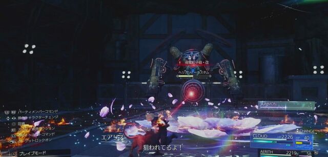基本的に浮いているので、ユフィの遠隔攻撃やバレットを主軸に攻めましょう。弱点は炎と毒、一定ダメージを与えるとヒート状態にでき、地上に引きずり落とせます。