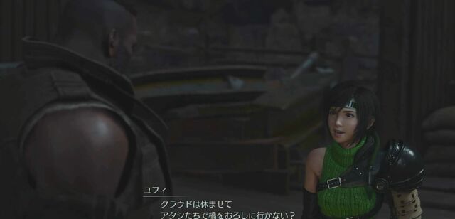 会議のシーンのあと、ザックス操作にうつります。エルミナと合流し、エアリスを自宅に帰すところにつながりました。