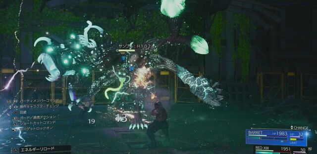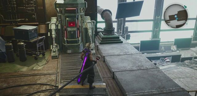 魔晄炉を目指して、森の中を進行していきます。魔晄炉内では途中で電力不足の箇所があるので、近くにある電源コードを持っていき、赤い画面になっている装置に差し込みましょう。それ以外は、基本的にフィーラーを追っていきます。