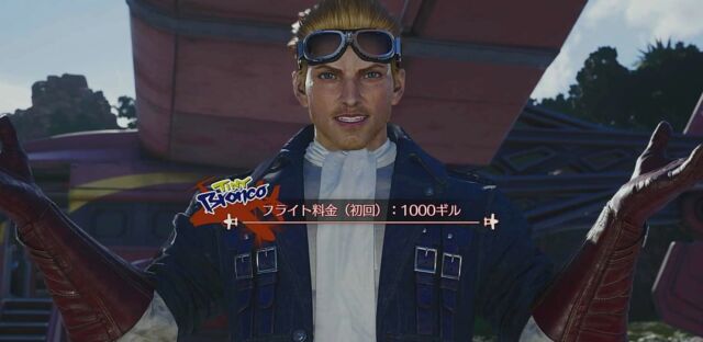 ゴンガガエリアを抜けて、一旦は野良飛行場を目指します。ここでシドが初登場!今回はプレイアブルキャラではなく操作はできませんが、空路を利用する際にシドの協力を得る展開です。これ以降は各地へのファストトラベルもシドに依頼してできるようになります。