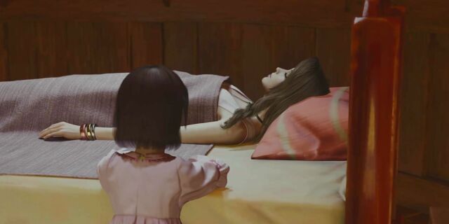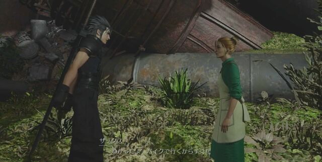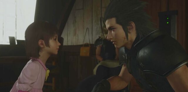 トレイラーでのシーン、マリンがザックスにエアリスのことを告げるシーンです。クラウドが助けにくるけど間に合わない、怖い人に殺されて死んでしまう、だからクラウドの病気を早く直して守ってもらいたい。