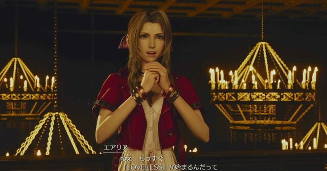 デートコースは、演劇「LOVELESS」をみてからのゴンドラ乗車。演劇でもいくつかの選択肢があったり、クラウドの戦いでコマンド操作が求められます。誰が来ても歌うエアリスは共通しているようです。