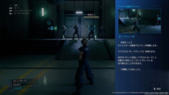 クラウドは、通常時の「ブレイブモード」、近接攻撃に特化した「アサルトモード」を使い分けながら戦います。