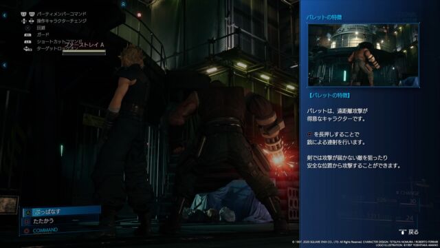 バレットは遠距離タイプのアタッカーなので、クラウドの攻撃が届かない敵がいる時は彼に切り替えて戦いましょう。
