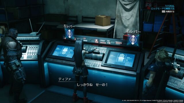 Lスティックでバレット、Rスティックでクラウドのレバーを操作します。操作の方向は上下どちらかで、ティファが操作する2のレバーと同じ動きです。