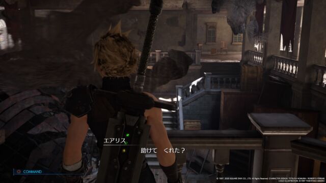 原作とは違ってティファと会話でき、バレット達と合流するように促されるのですが、すかさずエアリスが「ティファを助けよう!」クラウドの背中を押します。