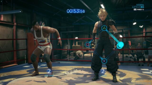 エアリスがレバー上下、ティファは○ボタン連打です。