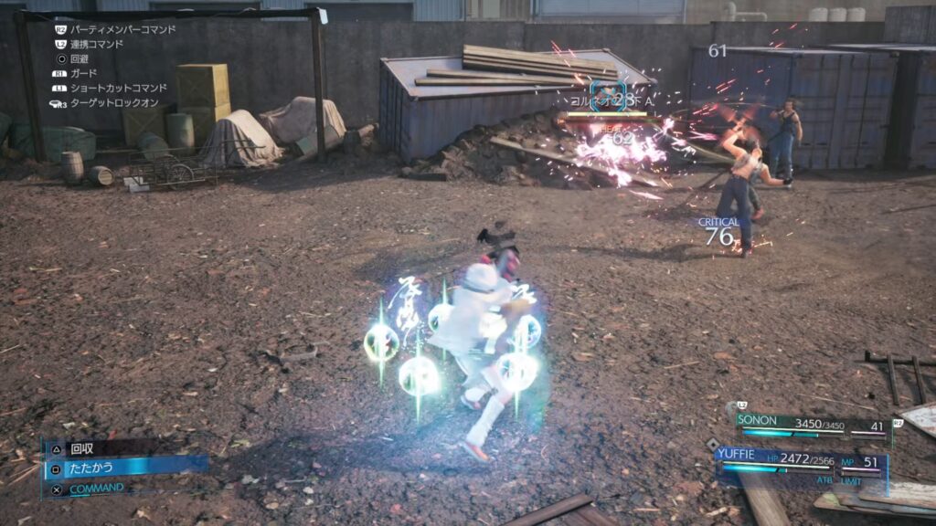 アビリティを連携で発動させるには、ユフィだけでなくソノンのATBゲージも蓄積した状態でなくてはなりません。