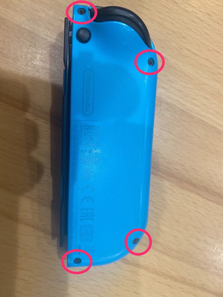 ジョイコンの裏側を見てみると、4箇所ネジでとめられているのがわかります。