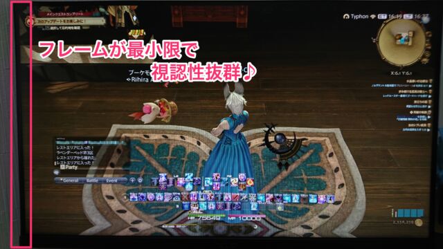 余計なフレームがないのでゲームに没入しやすく、フレームがあるモニターに比べて無駄な圧や野暮ったさがありません。