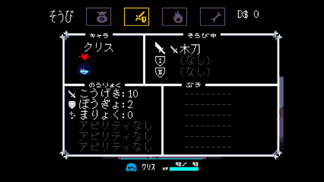 メニュー画面から「のうりょく」が見られるようになっており、そこには「アビリティ」の枠も。
