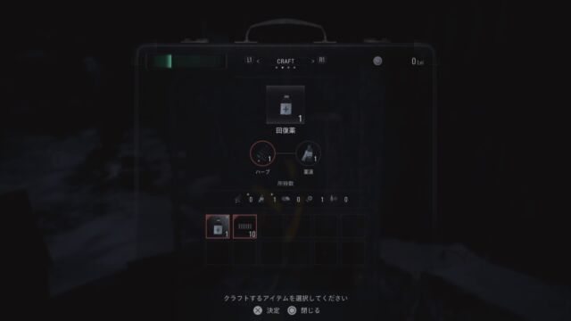 この中から2種類のアイテムを調合して、回復薬や弾丸が作れました。