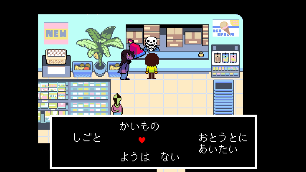 コンビニの店員になっていたサンズ、会話で“弟にあいたい”と伝えることができますが、弟の詳細はわかりません。