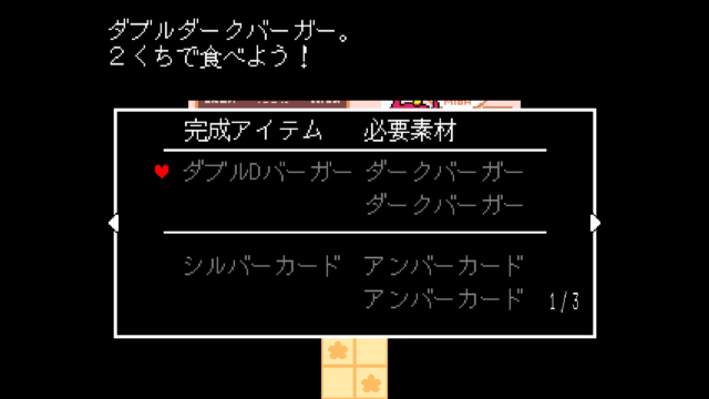 特定の回復アイテムや装備品を組み合わせると、より強いアイテムが得られる機能です。