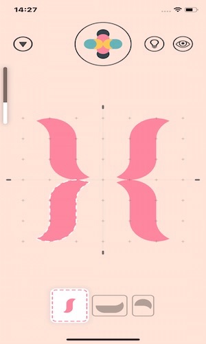 図形は万華鏡のように四方にミラーリングされており、それも利用しながら同じデザインに仕上げていきます。