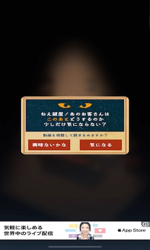 ステージクリア後に「気になる」を選んで広告を視聴すれば、続きの物語を読み進められます。