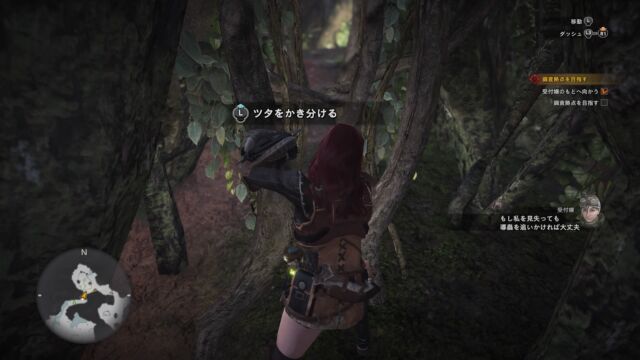場所によっては植物のツタをかき分けたり、ぶら下がったり、場所から場所へ飛び移ったりと躍動感のあるアクションも。