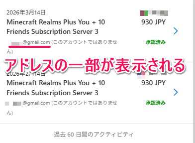 アドレスの一部がわかるので、あとはそのヒントを頼りに、決済内容を契約しているMicrosoftアカウントを突き止めてください。