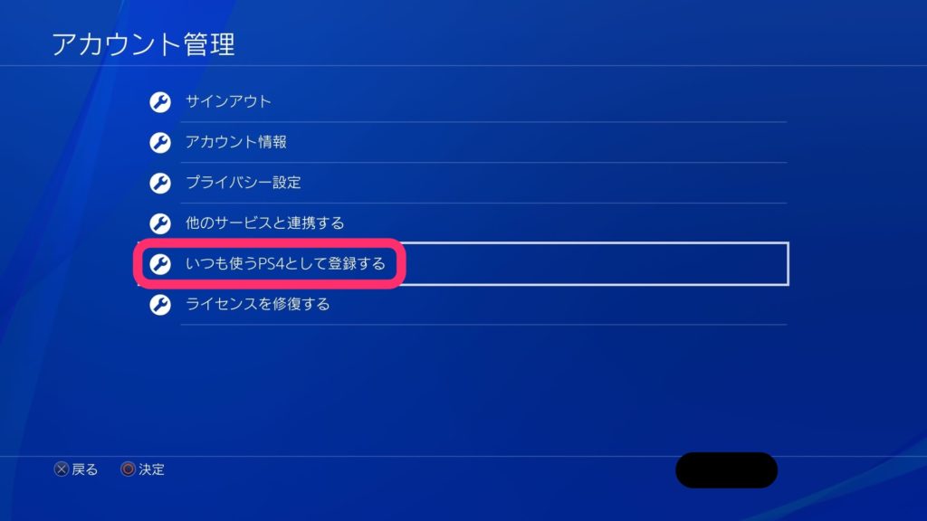 いつも使うPS4として登録する方法