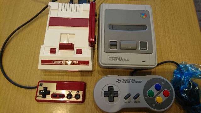 せっかくなので並べてみると、縦はややファミコンが長く、横はスーファミコンが大きかったですね。