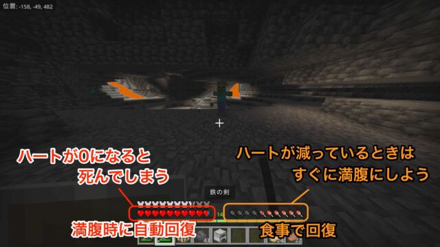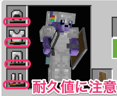 それでも、スケルトンやクリーパーといった離れた場所からもダメージを与える敵が多いなら、さっさと逃げた方が無難です。