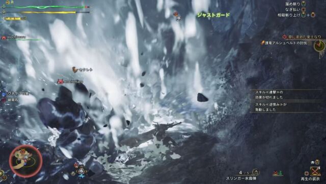 またジャストガードに成功すると、通常のガードよりも硬直時間が短く、素早く次の行動に移ることが可能。モンスターによっては大きく体勢を崩し、反撃のチャンスを大きく広げることもできます。
