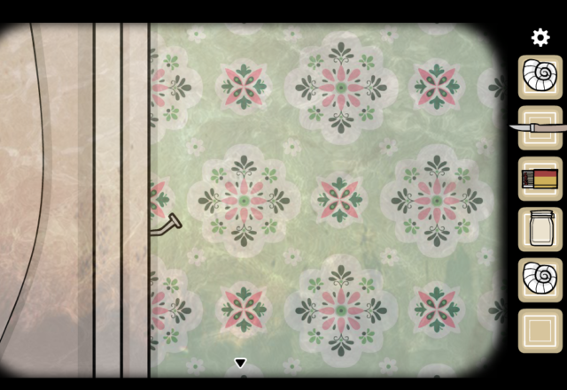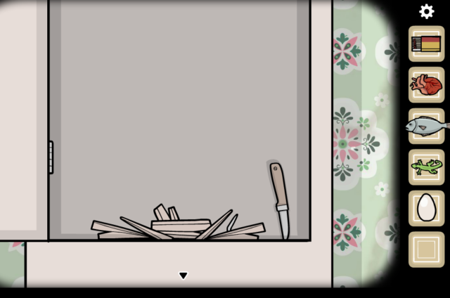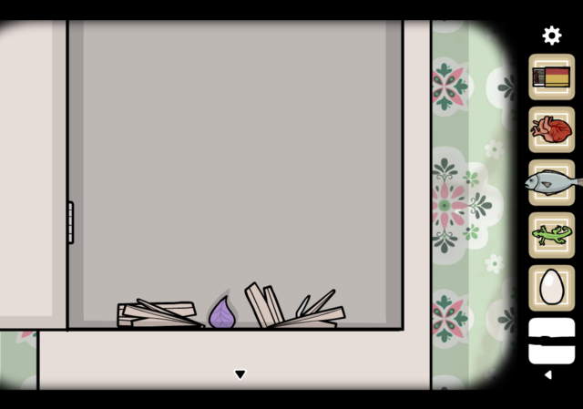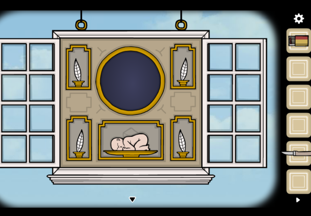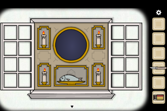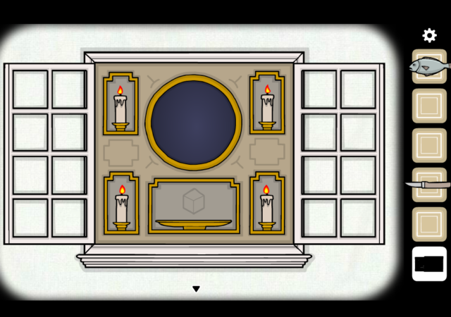 小窓のある部屋へ。窓を開け、左上の切り込み部分をナイフで切る
