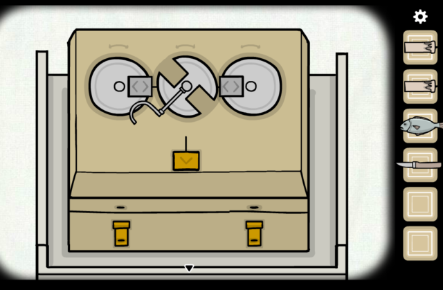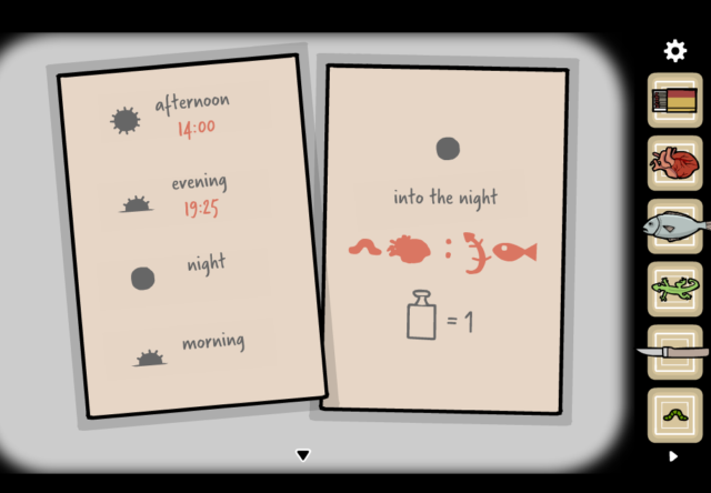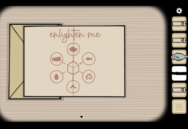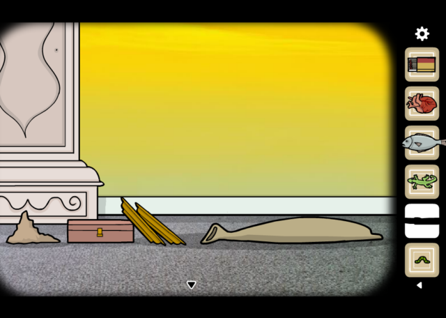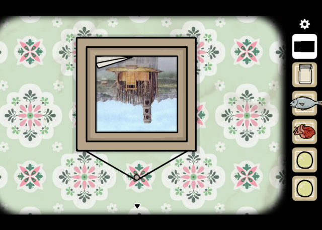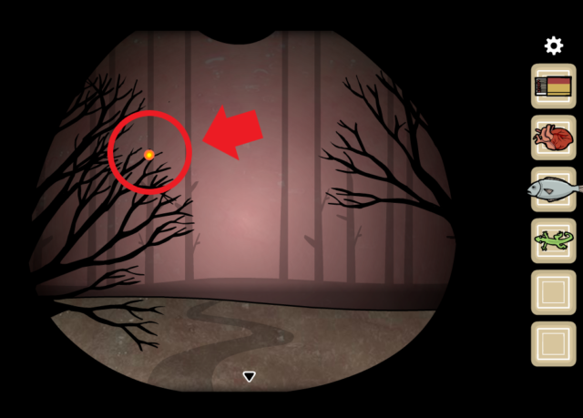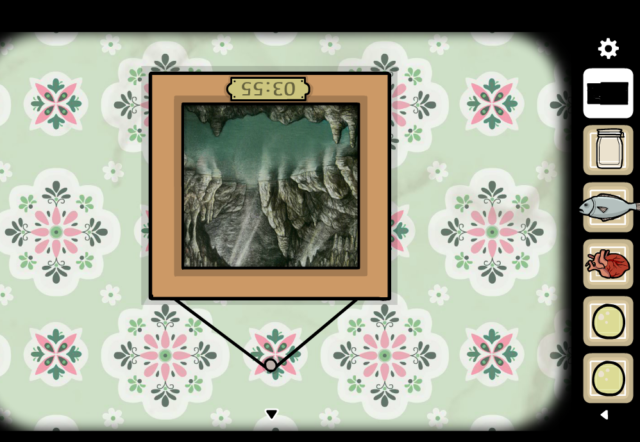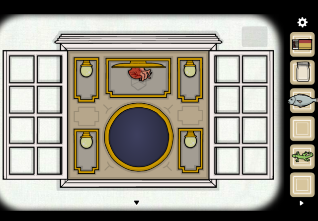 魚の上の黒い円をタップし、白い箱を2回タップして別空間へ