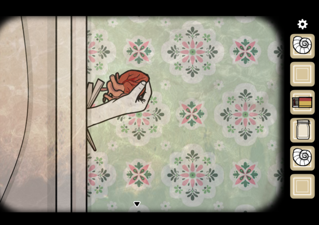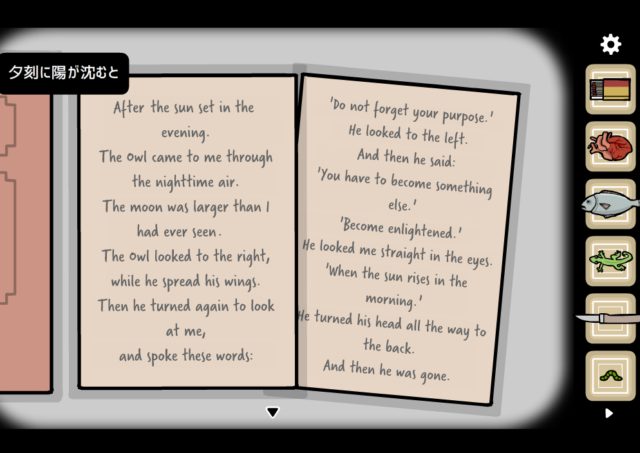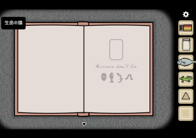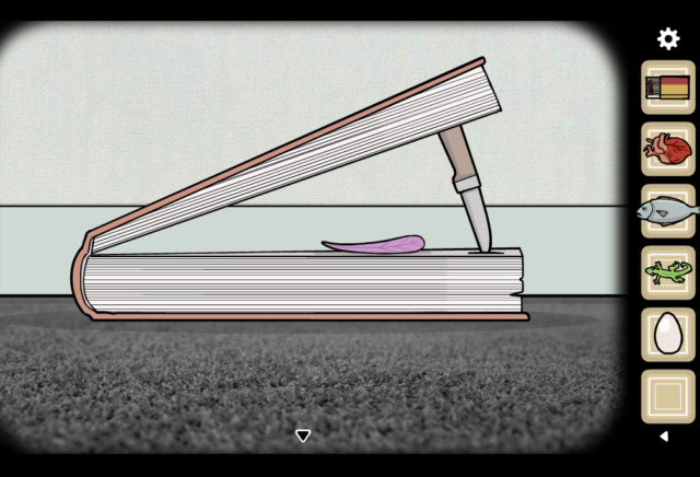 窓の部屋へ。先ほど抜き取った本が落ちているので、ページドラッグで詳細確認