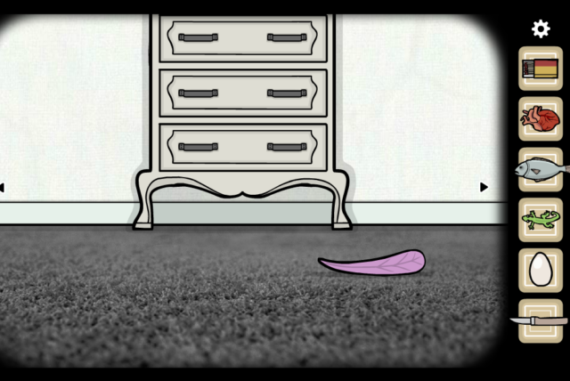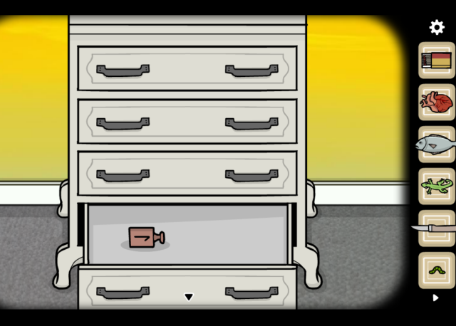 タンス(の段)が浮かぶ部屋へ。左上のナマコのようなものをクリック