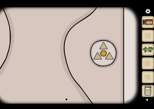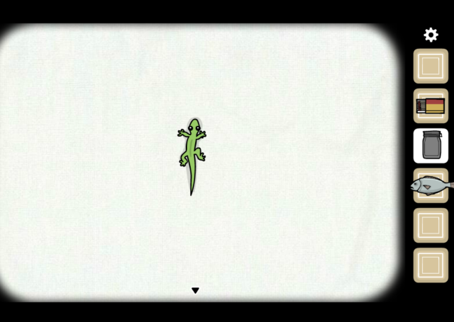 窓のある部屋へ。中央の大皿にヤモリを置き、別空間へ