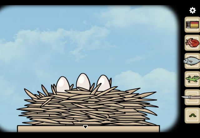 鳥の巣に卵を置く。さらに1つずつクリックで割る。