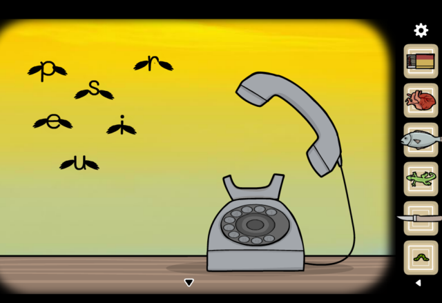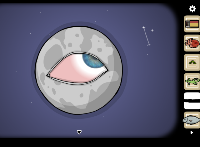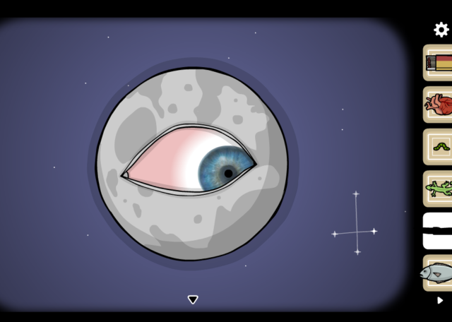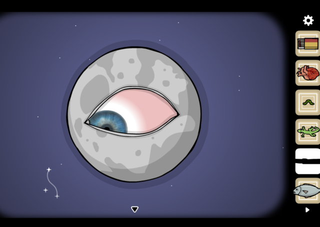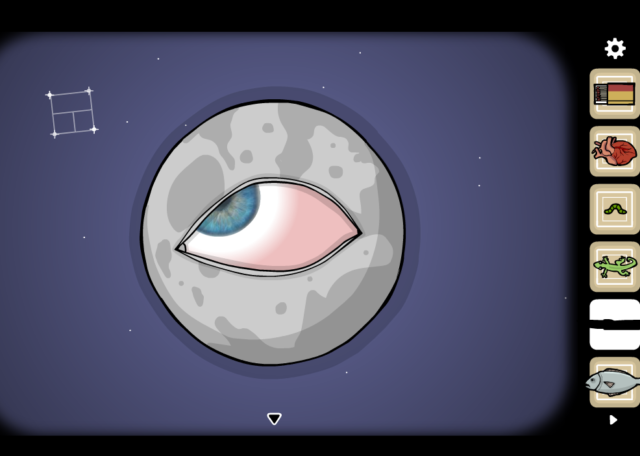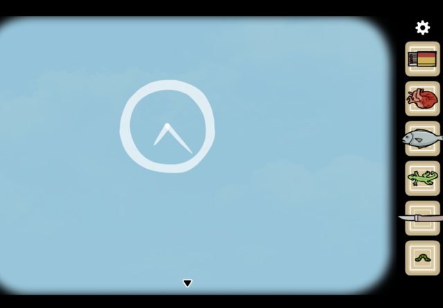 雲を1つずつ動かして、魚、芋虫、卵、ヤモリのシルエットになる位置に移動させる