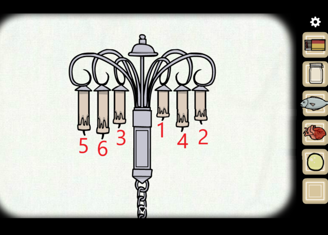左下の皿にロウソクがあるので、他の空いている皿に手持ちのロウソクを1つずつ乗せる