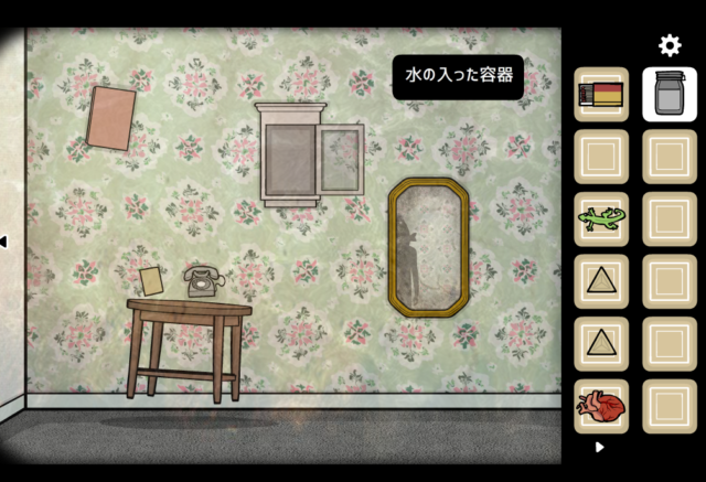 この空間で容器をクリックし、部屋をクリックすると容器に水が入れられる