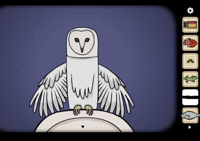 タンスの3段目にあった文書のとおり、フクロウの頭をドラッグして回していく。