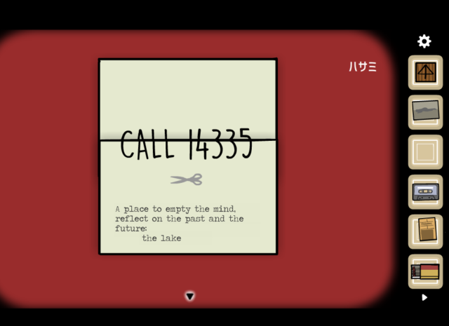 カットした紙の下部分を上部分にある線に合わせて重ねると、「CALL 14335」の文字が浮かび上がる