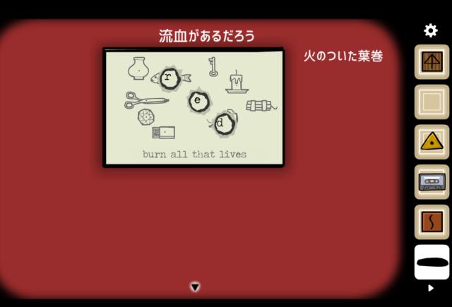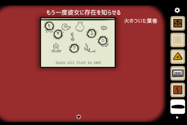 同様にハサミで切り、次は「赤いものを全て燃やす」。